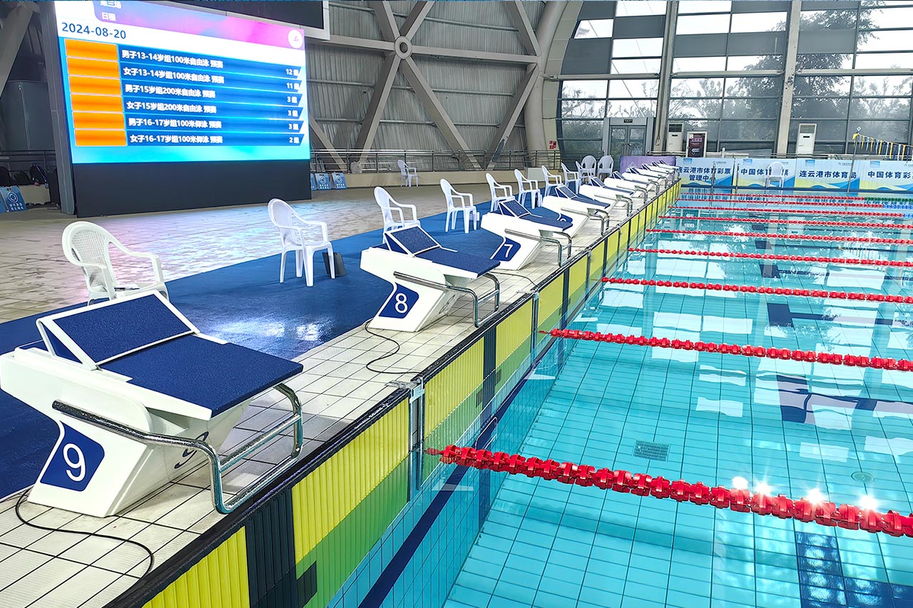 8月23日, 2024年江蘇省青少年游泳錦標(biāo)賽 在連云港體育中心游泳館精彩謝幕。金陵體育作為本次賽事的器材供應(yīng)商和賽事服務(wù)商為本次賽事提供了計(jì)時(shí)記分系統(tǒng)、仲裁錄像系統(tǒng)、視頻直播系統(tǒng)等電子設(shè)備以及場地泳道線、出發(fā)臺等競賽器材。